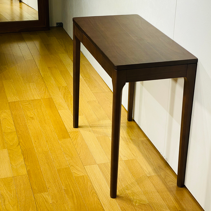 洗練されたシンプルデザインのコンソール。A4サイズ収納の引き出しが便利。