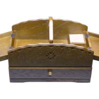 【 使い勝手抜群! 】 フリースペースが多く 形やサイズを気にせず ソーイングに使うものが一通り収納できます 引出しは、裁ちばさみや端切れ入れに 上のフタを開けると収納たっぷり 針差し山もついています 持ち運びに便利なコンパクトサイズ |