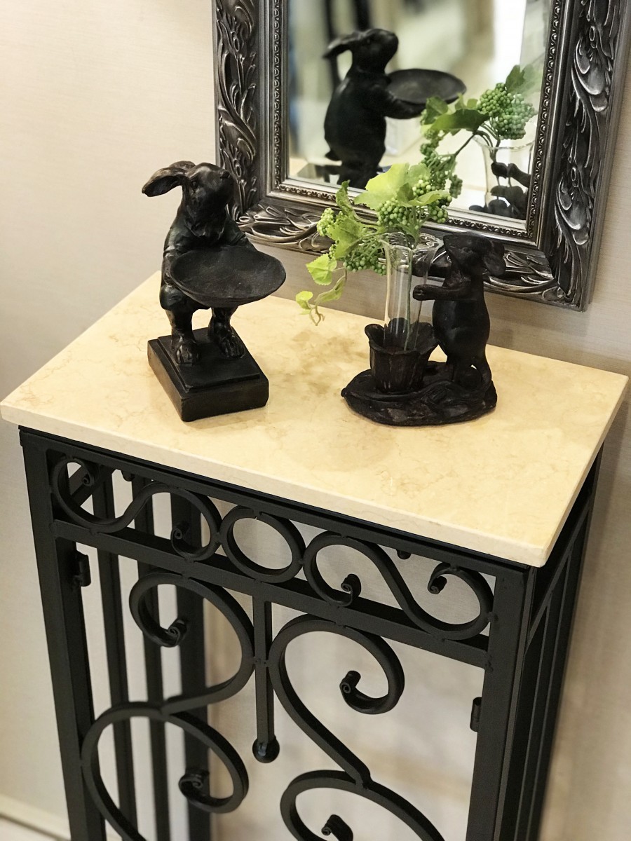 エレガントな曲線のアイアンと温かみのある人工大理石が絶妙にマッチしたコンソールです。