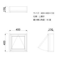 木製窓 格子なし WM-400 開閉窓 400x400x130mm