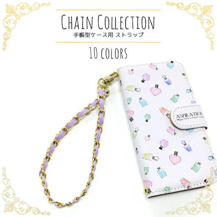 手首が通せるサイズでおしゃれに可愛く手帳型スマホケースをコーディネート♪ ゴールドカラーの金具パーツで簡単にセットできます。
