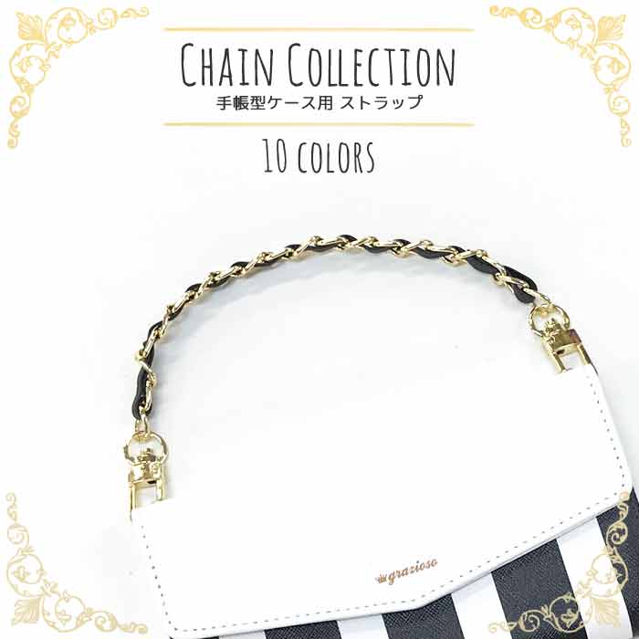 手首が通せるサイズでおしゃれに可愛く手帳型スマホケースをコーディネート♪ ゴールドカラーの金具パーツで簡単にセットできます。