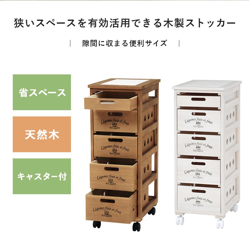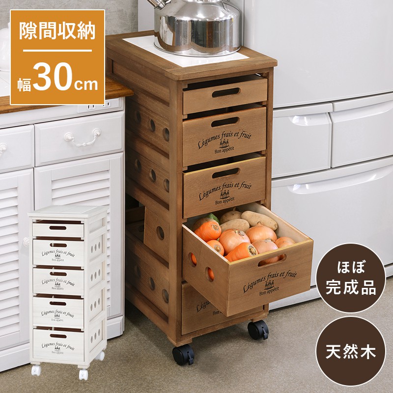 野菜ストッカー 幅30 奥行40 高さ79cm 5段 キャスター付き 引き出し すき間収納