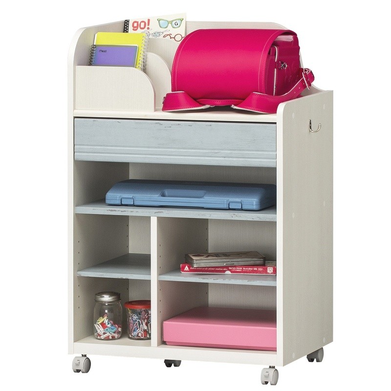 ■サイズ:幅627×奥行393×高さ933mm■素材:【本体素材】プリント紙化粧繊維板:【表面素材】プリント紙化粧繊維板:【異素材】フック:亜鉛合金/キャスター:ナイロン:【特殊加工】天板:ソフトフォーム/引出前板:ラッピング■注意事項:組み立て家具(お客様組み立て)■耐荷重 :【天板】15kg【移動棚】大10kg 小5kg【棚板】15kg[関連ワード]ランドセルと新入学に必要なものを収納できるランドセルラック。深型奥行約40cm、幅約65cm、高さ約95cm。ホワイトにブルーの女の子用。 ランドセルラック 幅:約65cm 高さ:約95cm ホワイト 白木目 ブルー ランドセルの色にマッチする 学童 収納 キッズ収納 リビング 子供部屋 シンプル ナチュラル
