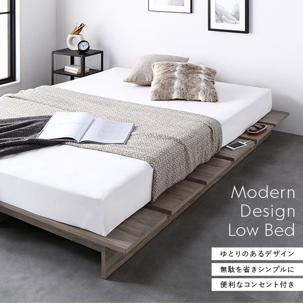 ホワイト ベッドフレームのみ フロアベッド クイーンベッド クイーンサイズベッド グレージュ コンセント付き すのこベッド 白 ナチュラル ローベッド