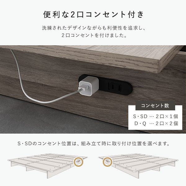 クイーンサイズベッド ベッドフレームのみ すのこ コンセント付き