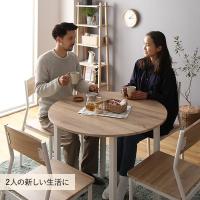 北欧 ダイニングテーブルセット 円形テーブル90cm おしゃれ 4人用 ナチュラル×ホワイト チェア4脚 5点セット