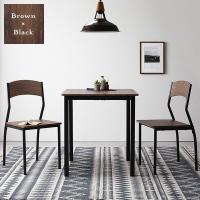 食卓テーブルセット 2人用 テーブル70cm チェア2脚 おしゃれ ブラウン×ブラック