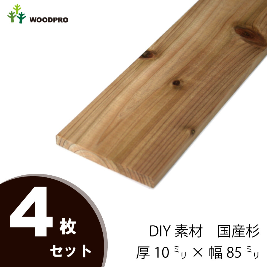 DIY素材◇国産杉(新材) 4枚セット厚10×幅85×長さ110〜200mm 塗装仕上げ