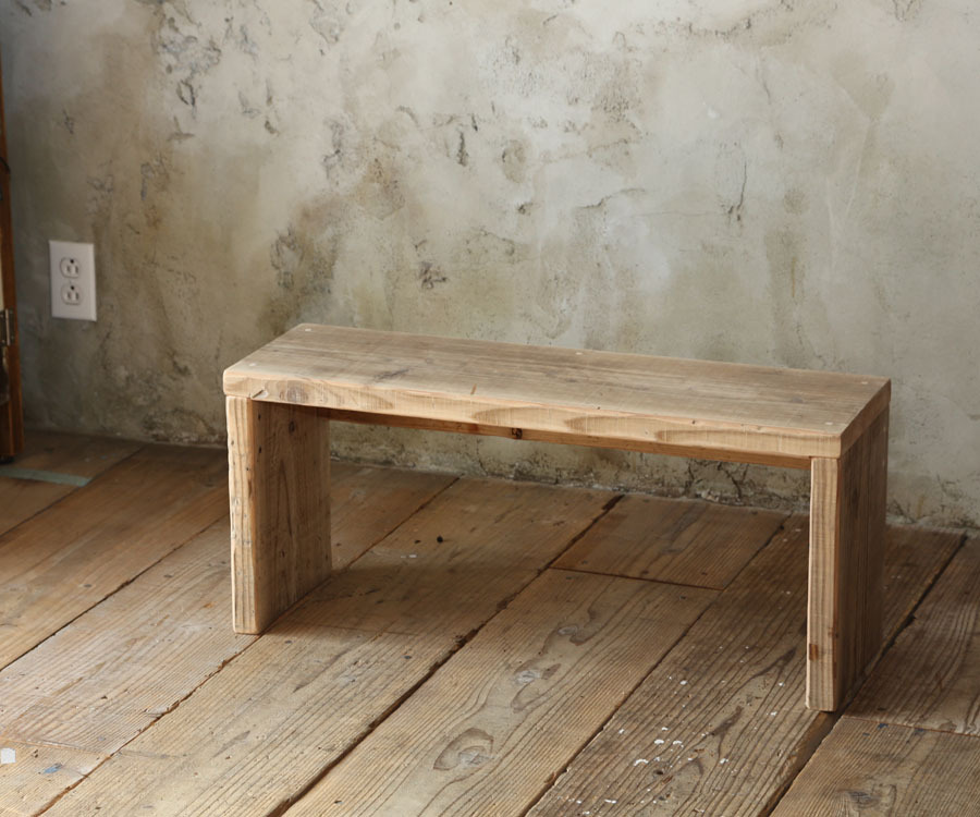 OLD ASHIBA(足場板古材)ベンチシェルフは無垢の木材を使った商品で、材料自体が古材のため、座面、脚部に反りがあります。