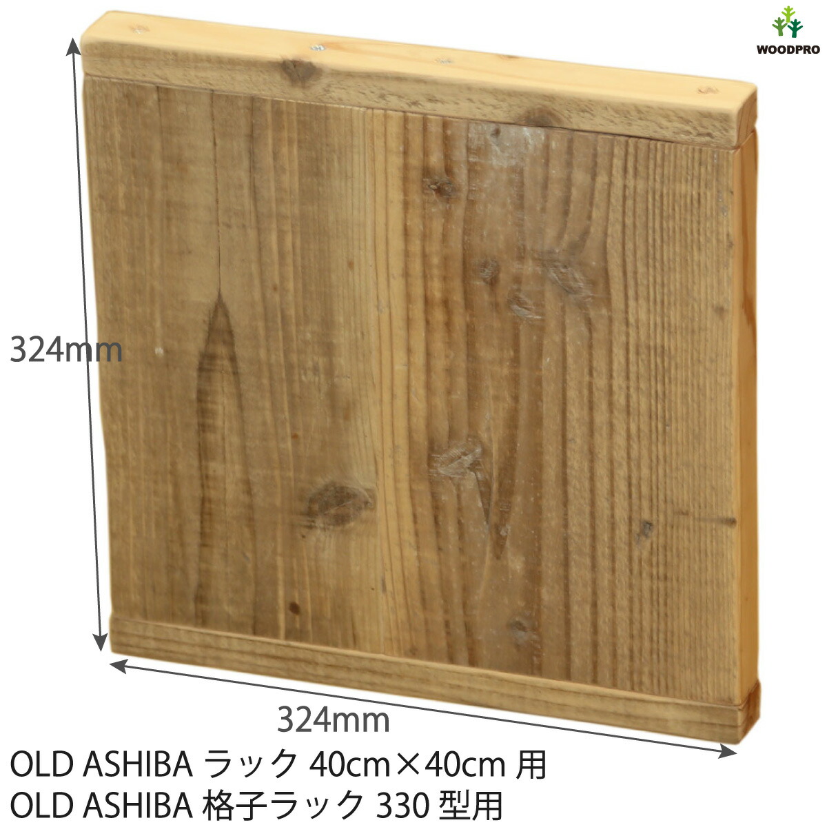 OLD ASHIBA(足場板古材)ラック正方形400ミリ・格子ラック330型用扉 厚み35mm×324mm×324mm 無塗装