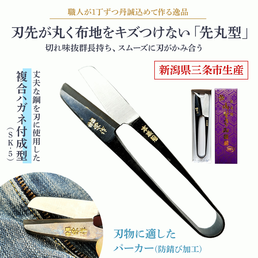 日本製 新品 栄作 先丸 高級絹鋏 ハガネ付パーカー握りバサミ 105mm