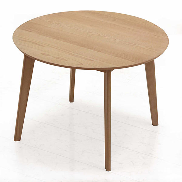 美しい木目が特徴の丸型ダイニングテーブル 円形になることで囲むようにチェアを配置でき長方形よりも圧迫感が少なくより多くの人が座れます