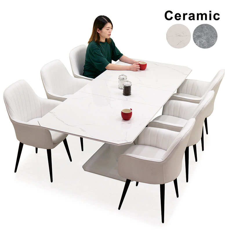 セラミック天板ダイニング7点セット 伸縮テーブル幅160〜200cm+チェア6脚