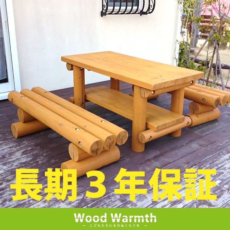 ガーデンテーブルセット 【カーキ色 】 木製 屋外 木製 遊具 丸太 国産 杉 屋外 かわいい 家庭用 自宅 庭 ACQ防腐加工品