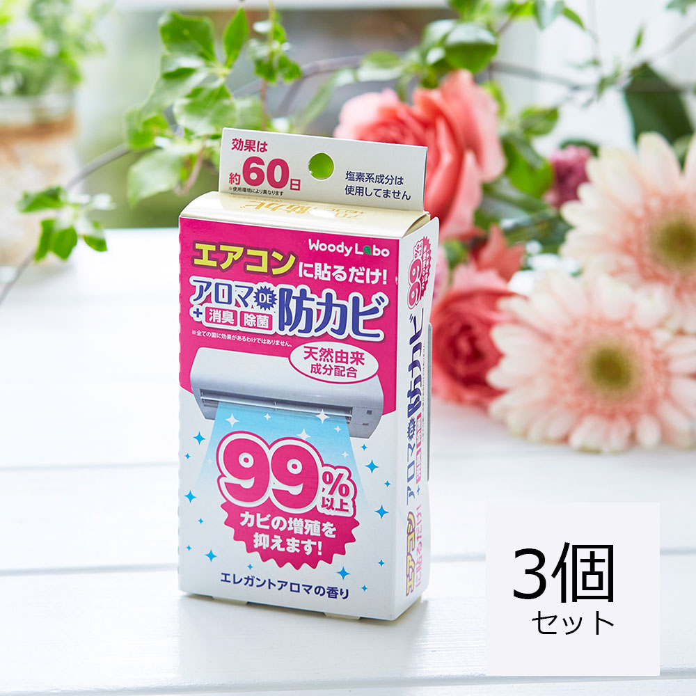 エアコン カビ防止 消臭 消臭剤 防カビ剤 臭い対策 部屋 芳香剤 まとめ買い アロマDE防カビ エレガントアロマ3個 カビきれい 貼るだけ 公式