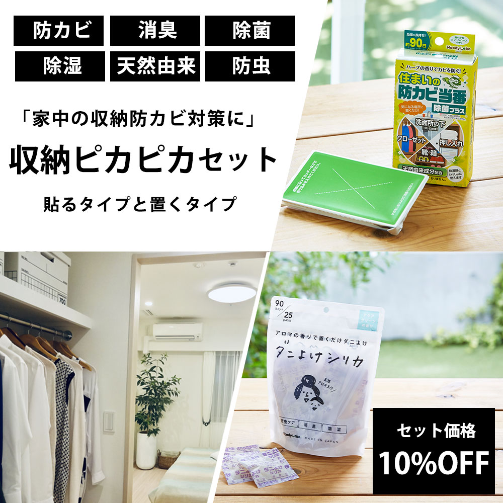 カビ ダニ 収納 防カビ 防ダニ 消臭 除湿 消臭剤 消臭力 除菌 虫よけ 天然由来成分 押し入れ クローゼット 引き出し ダニよけシリカ 収納ピカピカセット 公式