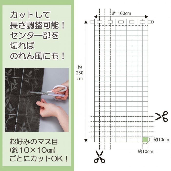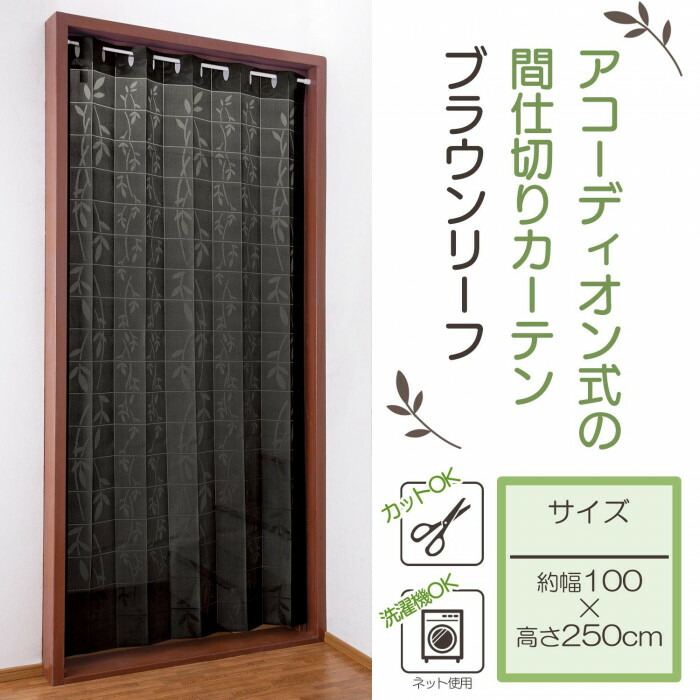 設置場所に合わせ10×10cmのマス目に沿って、お好みの幅や長さにカットできるアコーディオンカーテン。使用しない時は、片側へサッっと簡単に折りたためてスッキリ!お部屋の間仕切りに、急な来客にも最適です。シックなブラウンとほどよく透けるリーフ柄で、目隠しをしながらお部屋を素敵に演出します。 商品写真は光の具合やパソコンのモニターの種別、環境によっては、見え方が実際のものと多少異なって見える場合もございます。 |