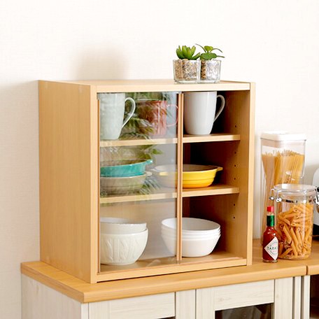 ミニ食器棚 ガラス扉付き 引き戸 カウンター上 卓上 キッチン 隙間 収納 ラック スキマ 三段 3段 ロータイプ 低い コンパクト 安い スリム 薄型 小型 小さい 軽量 一人暮らし カップボード ナチュラル 整理 木製 激安 調味料 大容量 台所 狭い 幅45 奥行30 高さ45 皿 昭和