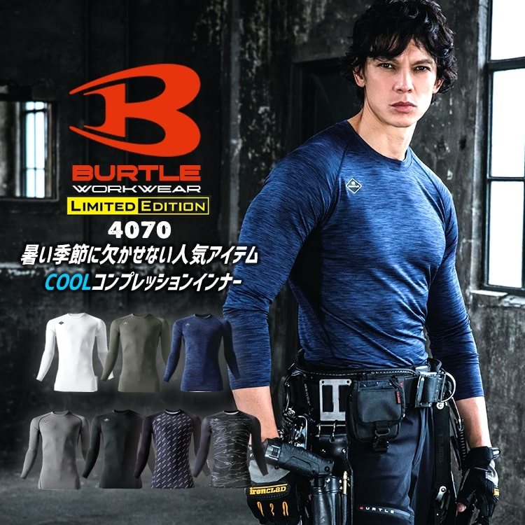 バートル 2025年 4070 インナーシャツ コンプレッション クール 春夏 長袖 接触冷感 吸汗速乾 UVカット 作業着 作業服 BURTLE