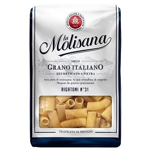 ラ・モリサーナ リガトーニ・ブロンズはマカロニを大きくしたような太い筒状で、トマト系のソースとよく合います。詰め物パスタやグラタンにも。