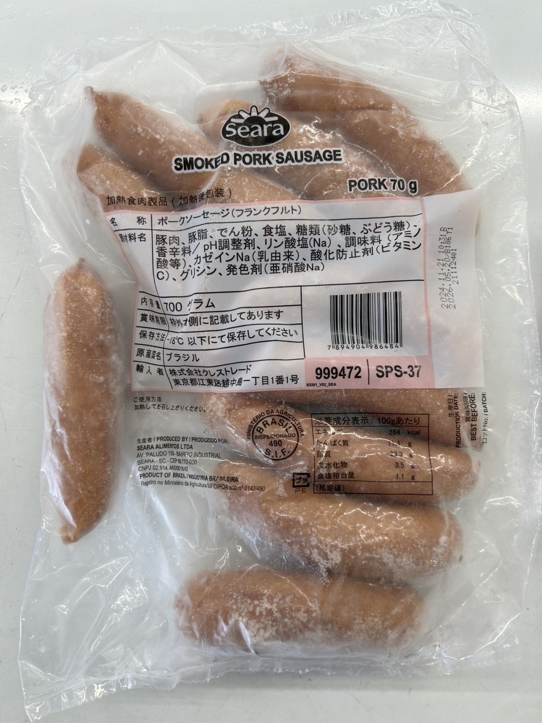 【在庫処分・超特価】Seara(セアラ) スモークポークソーセージ プレーン 700g