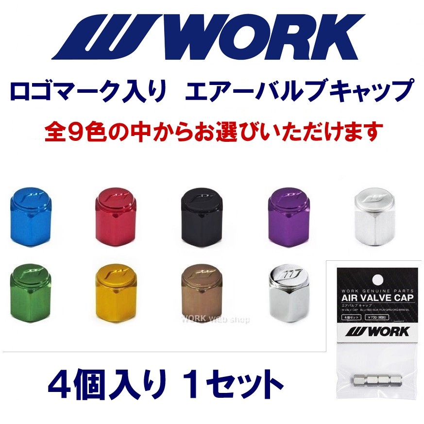 WORK(ワーク) エアバルブキャップ 4個セット アルミ製 ブラック / ブルー / ブラウン / グリーン / オレンジ / パープル / レッド / シルバー / メッキ