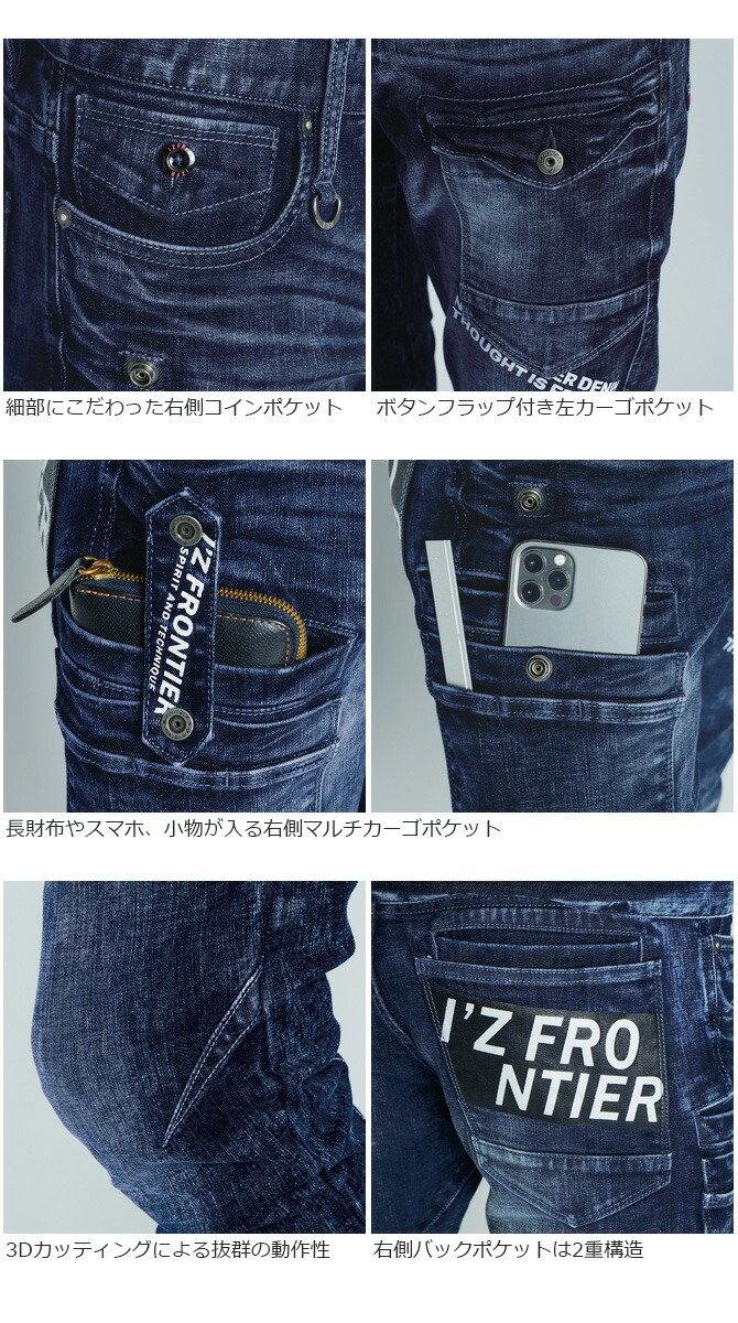 アイズフロンティア ハイパワーストレッチ3Dデニムカーゴパンツ I'Z FRONTIER 7350シリーズ IZ-7352 メンズ オールシーズン 春夏 秋冬 作業服 作業着 爆買