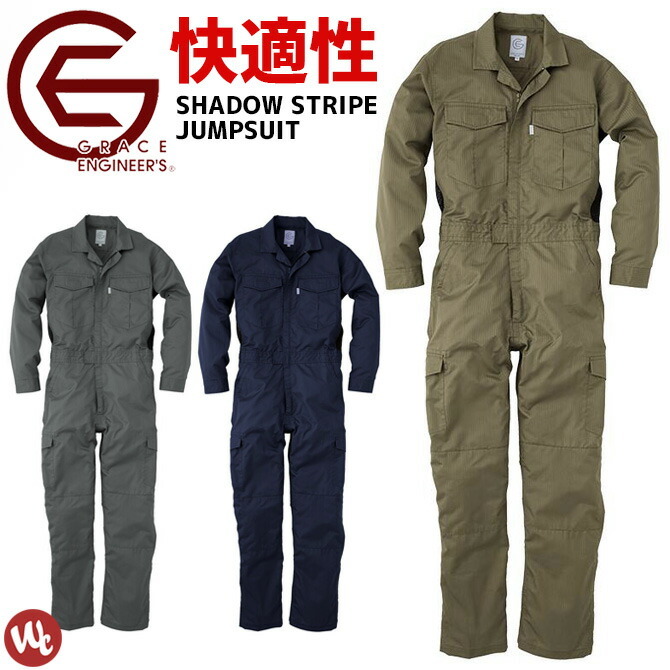 シャドーストライプ・サマー長袖ツナギ グレースエンジニアーズ GRACE ENGINEERS GE-527 エスケープロダクト メンズ レディース 夏用 吸汗速乾 作業服 爆買