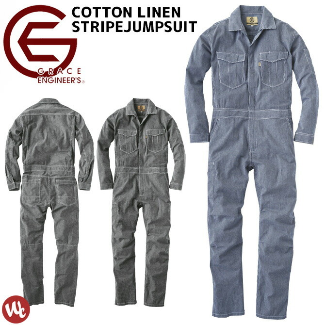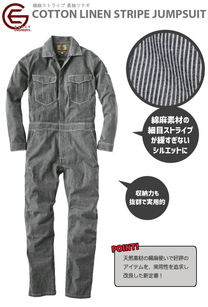 綿麻ストライプ長袖ツナギ グレースエンジニアーズ GRACE ENGINEERS GE-587 エスケープロダクト メンズ レディース 春夏用 作業服 爆買