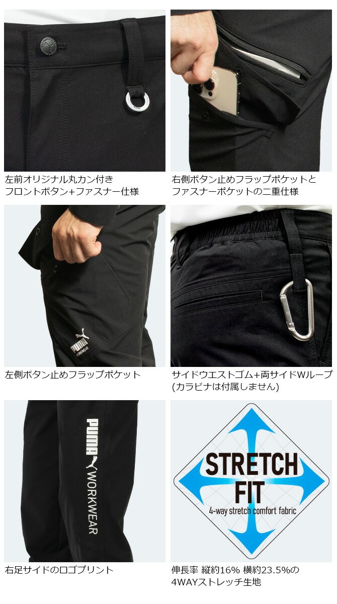 世界のリーディングスポーツブランド「PUMA(プーマ)」の作業で必要な機能性を備えたワークウエアブランド「PUMA WORKWEAR (プーマワークウェア) 」のストレッチカーゴパンツです。