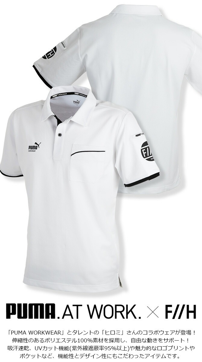 【1点までネコポス可】数量限定2026年春夏 作業ウェア PUMA×ヒロミ コラボ プーマ 半袖ポロシャツ PW-3044G 吸汗速乾 ストレッチ UVカット メンズ 作業着 爆買