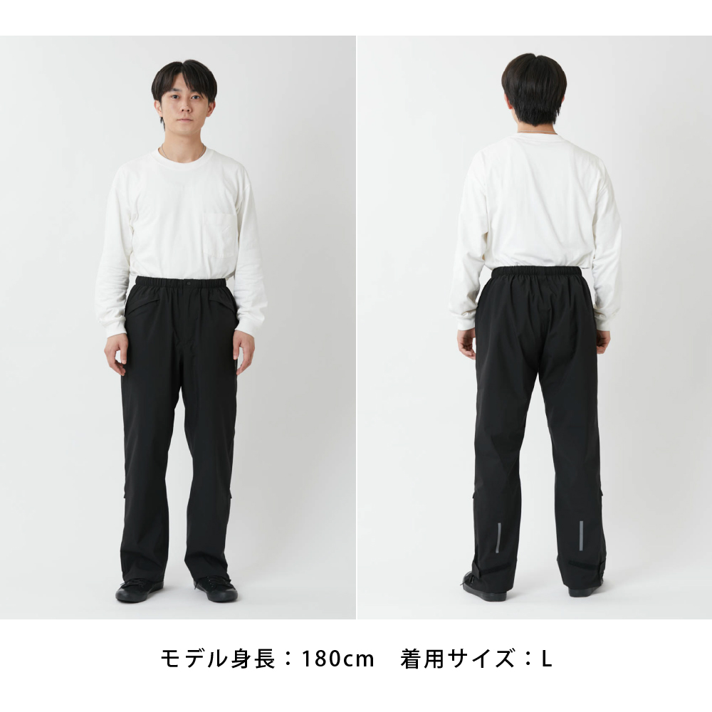 | 動きやすさと快適さを兼ね備えた、4WAYストレッチ素材のレインパンツです。軽量で柔軟性があり、防水・透湿仕様だから、雨の日もムレにくく快適な履き心地を提供します。前開きファスナーと裾ファスナーを備え、スムーズに着脱が可能です。自転車での通勤・通学、散歩、ゴルフ、アウトドアシーンまで幅広く活躍します。便利なポケット付きで、小物の収納にも◎。持ち運びに便利な専用収納袋付きで、急な雨にも対応可能。コンパクトなのでバッグの中でも場所を取らず、登山などの雨具としてもおすすめ。シンプルなデザインで男女兼用、どんなコーデにもなじみます。雨の日もアクティブに過ごせる高機能レインウェアをぜひお試しください。 |