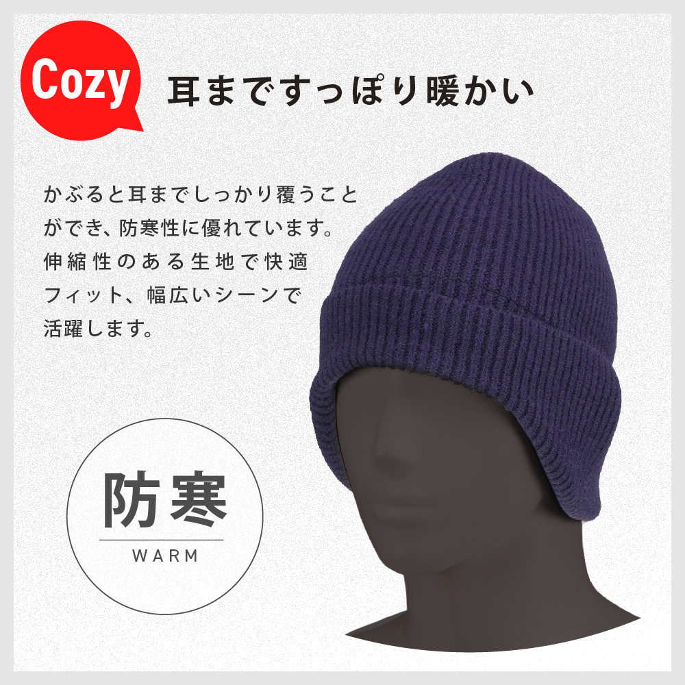 | シンプルなデザインの耳付きニットキャップです。かぶると耳までしっかり覆うことができ、防寒性に優れています。伸縮性のある生地で快適なフィット感を実現し、タウンユースはもちろん、アウトドアや通勤・通学、作業シーンまで幅広く活躍します。カラーは定番のブラックとネイビーの2色展開。落ち着いた色合いでコーディネートを選ばず、シーズンを通して長くご使用いただけるアイテムです。 |