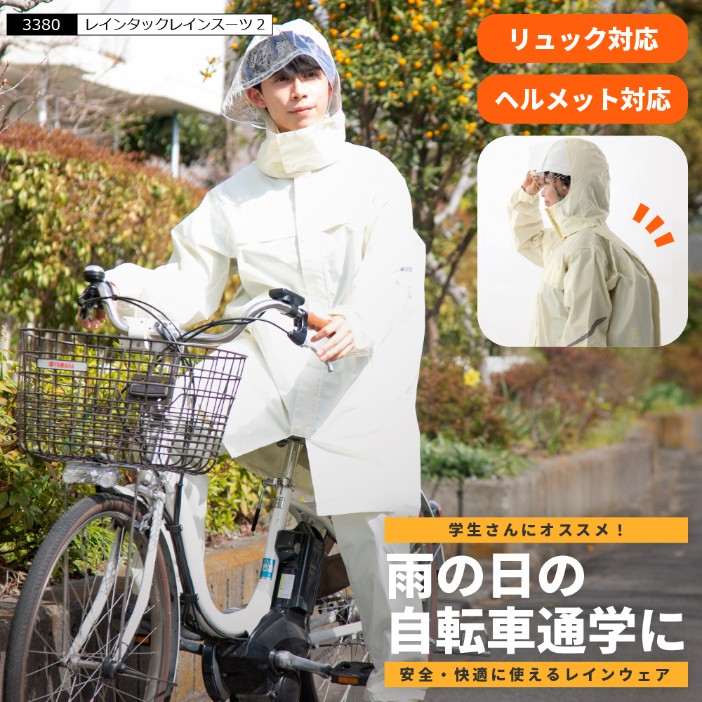 レインウェア 自転車 通学用 リュック対応 学校指定 カッパ 雨具 レインスーツ 中学生 高校生 メンズ レディース 入学 レインタックレインスーツ2 3380