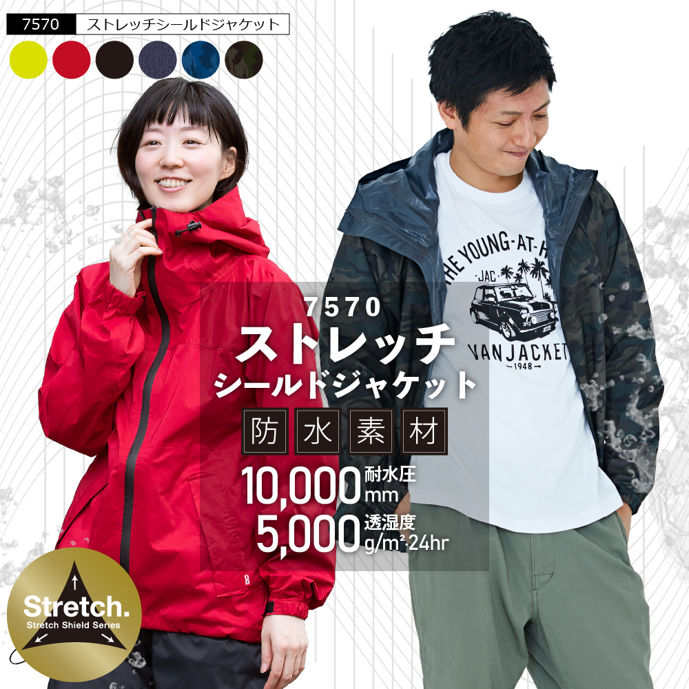 ※こちらはレインジャケットのみの商品です。別売りの「7571ストレッチシールドパンツ」と併せて着用可能です。