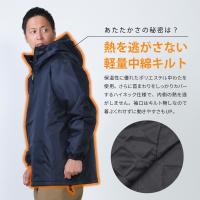 | フードと身頃がキルティングになっている定番の防寒ヤッケです。袖の部分はキルトなしの一枚生地なので着ぶくれせずに動きやすいのが特徴。キルト部分にはポリエステルの中わたを使用し保温性を確保しました。プルオーバータイプで襟はハイネックになっているので、防風性にも優れています。鍵やスマホを入れるのにも便利なポケットつきで、作業や散歩など幅広くお使いいただける一着です。別売りのキルトパンツと合わせればセットアップも可能です。 |