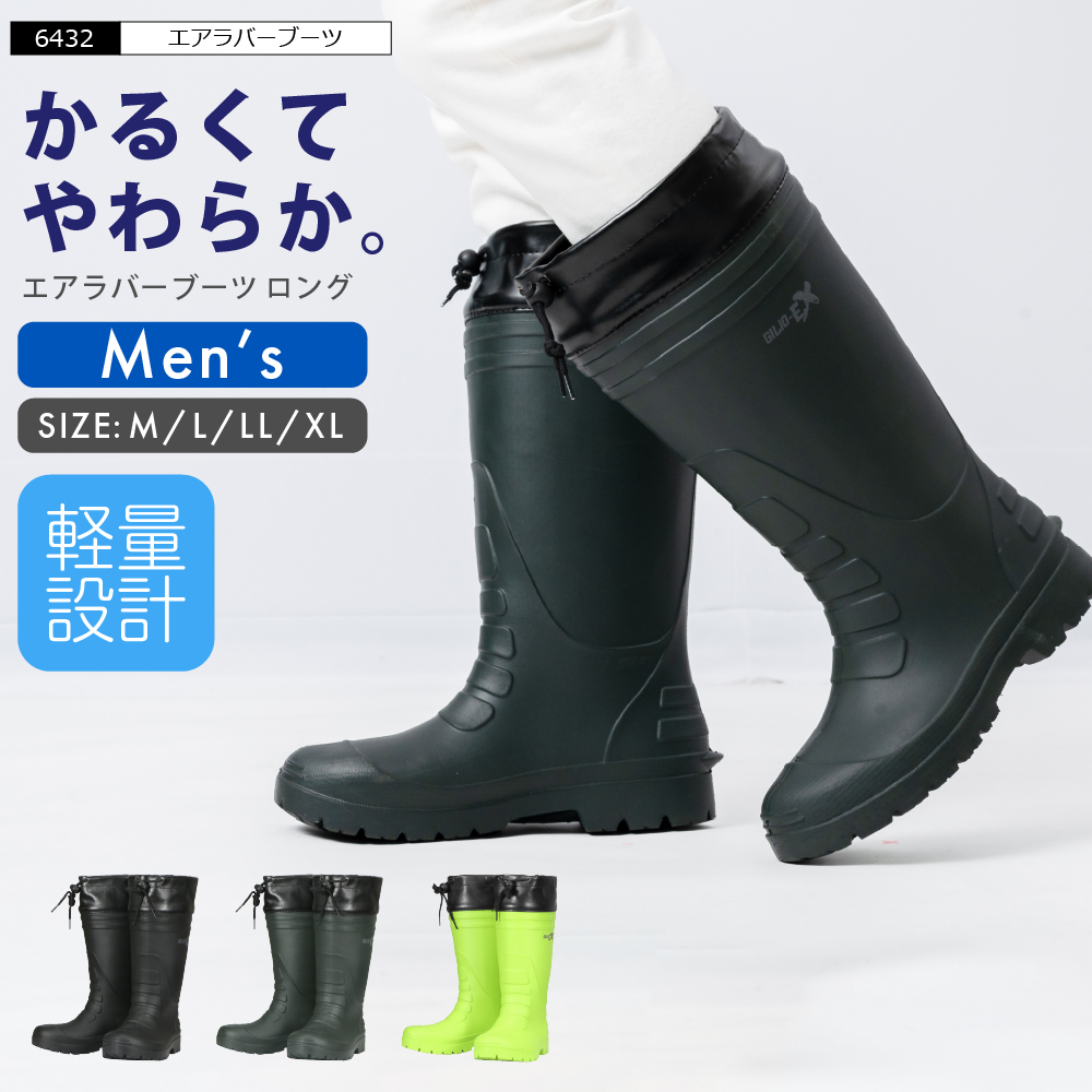 | 軽くてやわらかな新素材発泡ゴムを使用したフィット性の高い長靴です。従来の長靴に比べて格段に軽くなっているので、履いていても疲れません。素材に使われている発泡ゴムは、スタッドレスタイヤにも使用されていて耐久性に優れています。つま先部分もしなやかに曲がるので、立ち座りの多いガーデニングや農作業などの作業に最適です。履き口カバーがついているので泥や砂も入りにくいですよ。カップインソール(足を包み込むかたちの中敷)で履き心地もバツグン。今までの重くて硬い長靴から、ぜひ履き替えてみませんか? |