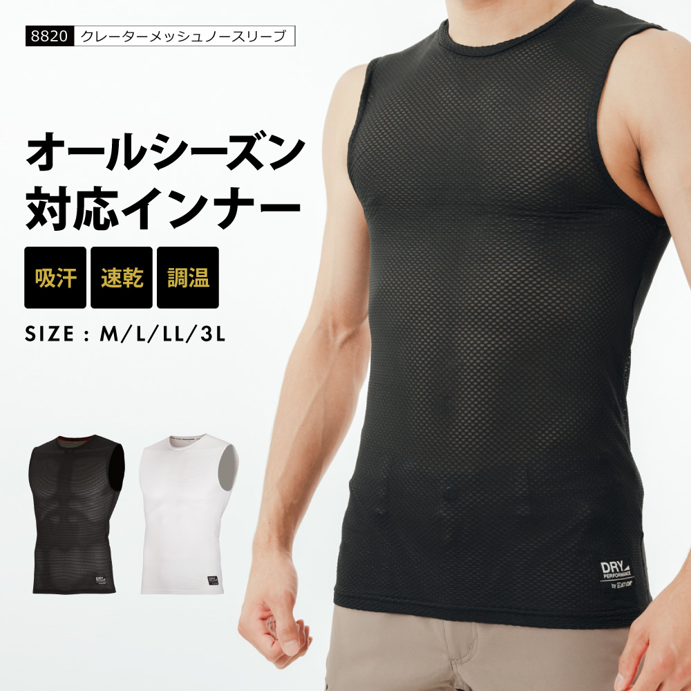 | 【カラー、デザイン、柄】 ホワイト(白) ブラック(黒) 【仕様】 インナー メッシュ ノースリーブ 丸首 クルーネック インナーウェア ドライ コンプレッション クレーターメッシュ 【用途】 スポーツやアウトドア、毎日の通勤通学や作業の際など多用途にお使い頂けます。 【こんな方にオススメ】 衣類のべたつきを抑えるコンプレッションインナーをお探しの方に。 【シーズンイベント】 メッシュ構造で通気性のよいインナーウェアはギフトにもおすすめです。 |