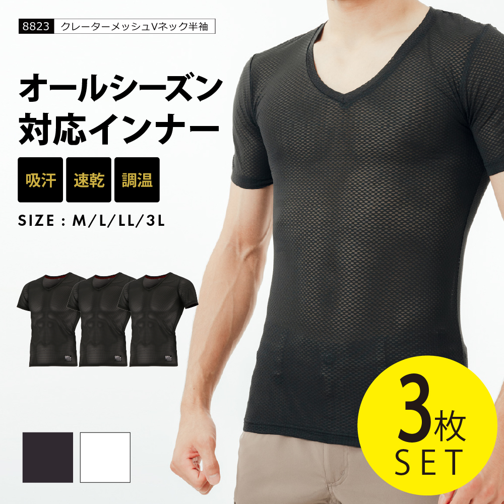 | 立体的なメッシュ構造によって効果的な汗処理を可能にした、クレーターメッシュを採用したVネック半袖のメンズインナー。特殊クレーター構造のメッシュが発汗時でも素肌に生地を密着させず、ベタつき感を軽減。一方、低温時にはメッシュの凹み部分にできたデッドエアによって、適度な保温力を発揮し、一年を通じて快適なアクティビティをサポートします。軽量で緩やかにコンプレッションの効いた生地はフィット感抜群です。日常からスポーツ・アウトドア、軽作業まで、オールシーズン手放せない新しいアンダーウェアです。 |