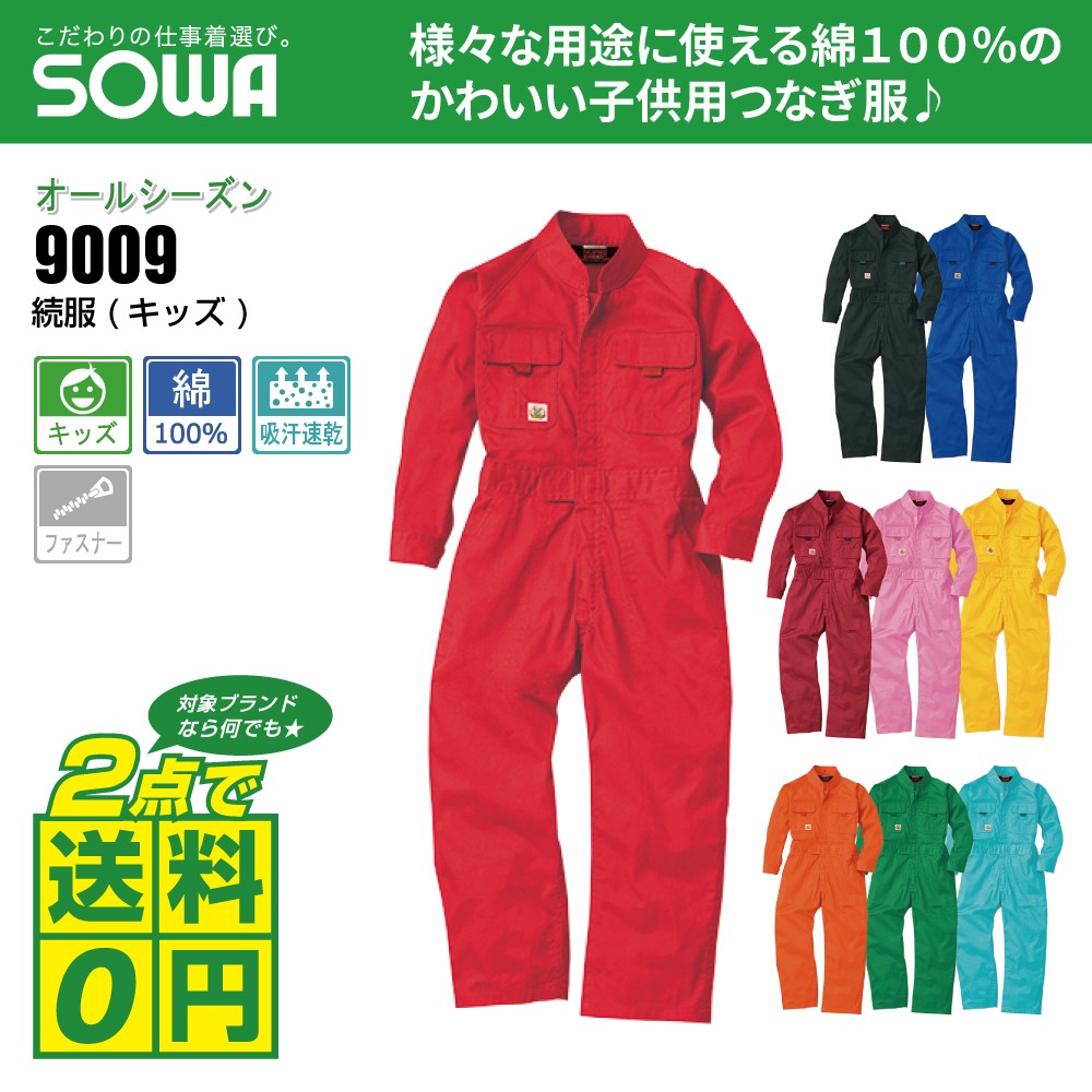 桑和 通年 キッズ 長袖 つなぎ 綿100% 長袖ツナギ 9009 全9色 100-150