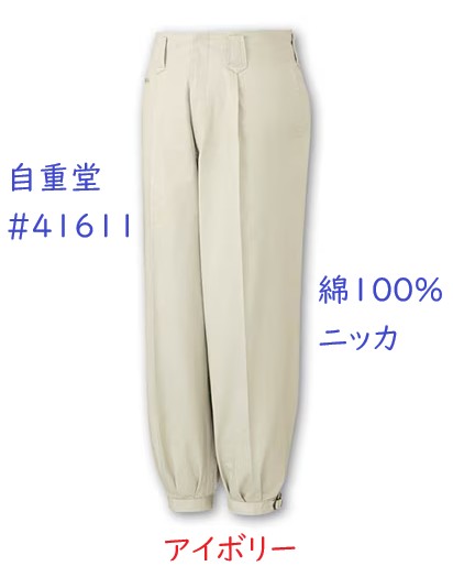 定番の綿100%ニッカズボン