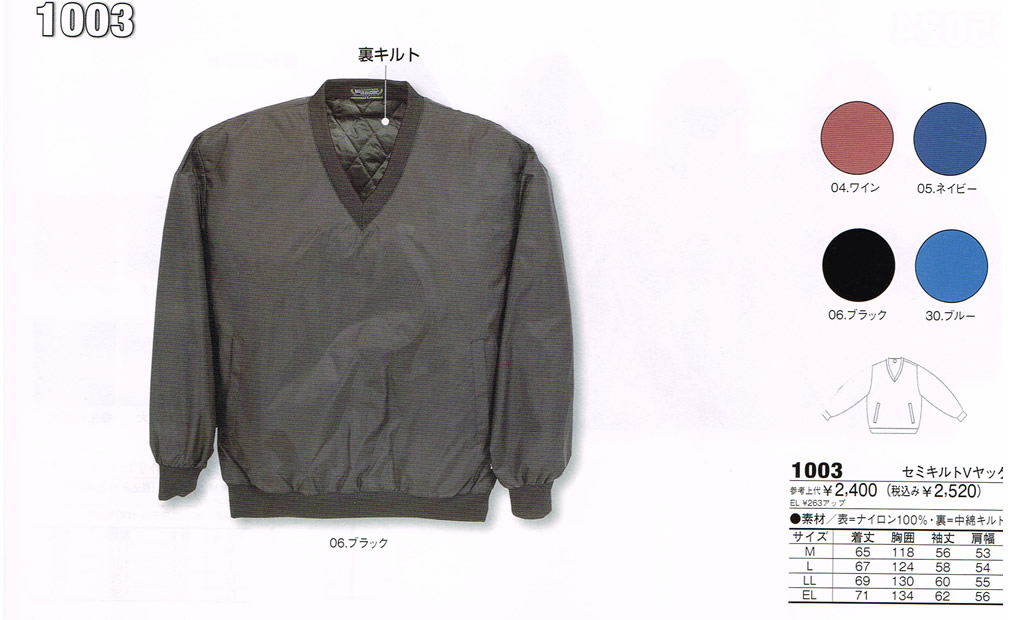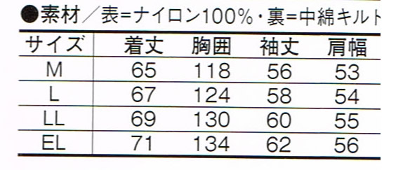 シンメン 防寒着 1003 セミキルト Vヤッケ M 〜 3L (EL)