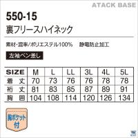 550-15 作業シャツ 裏フリース 作業服 作業着 アタックベース ハイネックシャツ 長袖