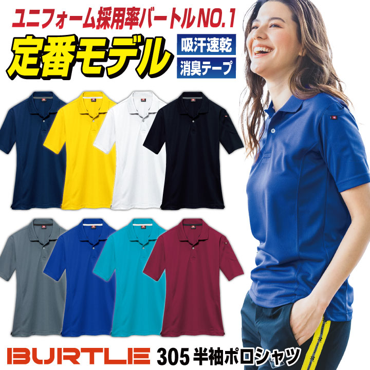 BURTLE 305 半袖ポロシャツ ユニフォーム採用率バートルNO.1 ワークポロシャツのスタンダードモデル!! 汗とベタ付きとニオイ抑える吸汗速乾加工と消臭テープ付き。