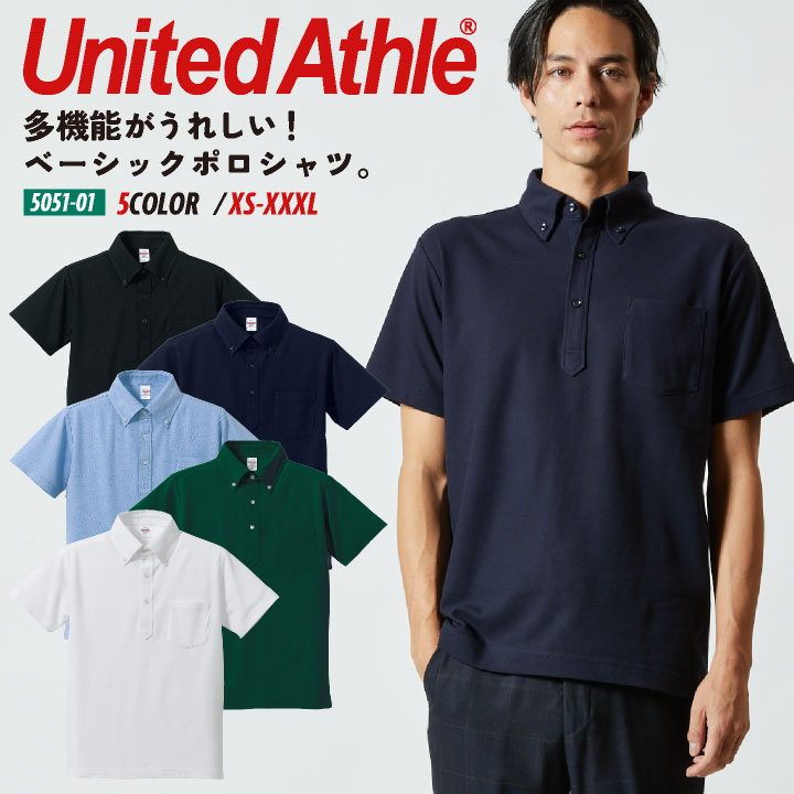 5051-01 ユナイテッドアスレ クールビズにもスマートに対応するポケット付き&ボタンダウンポロ。 ・モニターにより実際の色と多少ちがって見えることがあります。人気商品のため、商品在庫が欠品することがあります。