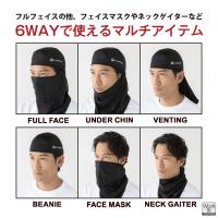 フルフェイスの他、フェイスマスクやネックゲイター等6WAYで使えるマルチアイテム。