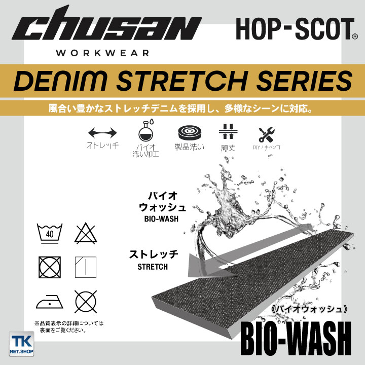 風合い豊かなストレッチデニムを採用し、多種ポケットの他、