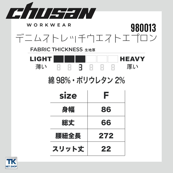デニムストレッチウエストエプロン エプロン ストレッチ デニム 前掛け DIY キャンプ アウトドア 作業服 作業着 chusan cs-980013