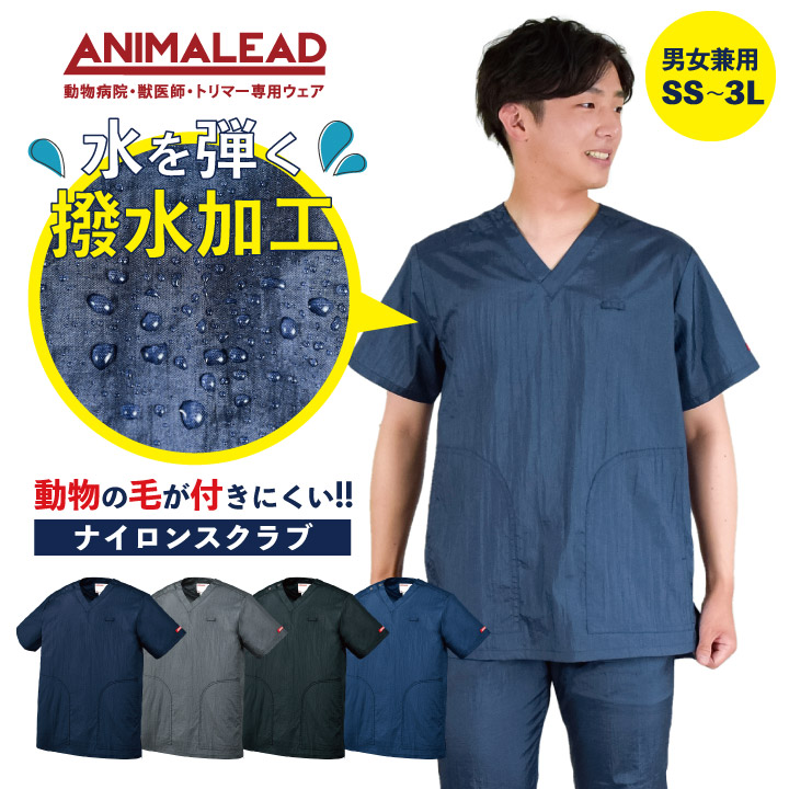アニマリード スクラブ ANIMALEAD 獣医師 トリマー 動物病院 ペットショップ 半袖 白衣 男性 女性 兼用 ナイロン はっ水加工 チトセ ネコポス ct-al0022